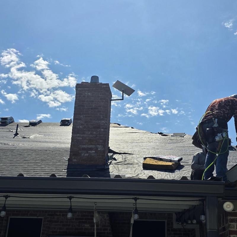 Moore Dynamic Roofing performed a chimney inspection in Mesquite, Texas, to investigate flashing issues. The team discovered hail damage during the inspection and advised the homeowner to file a claim for full roof replacement.